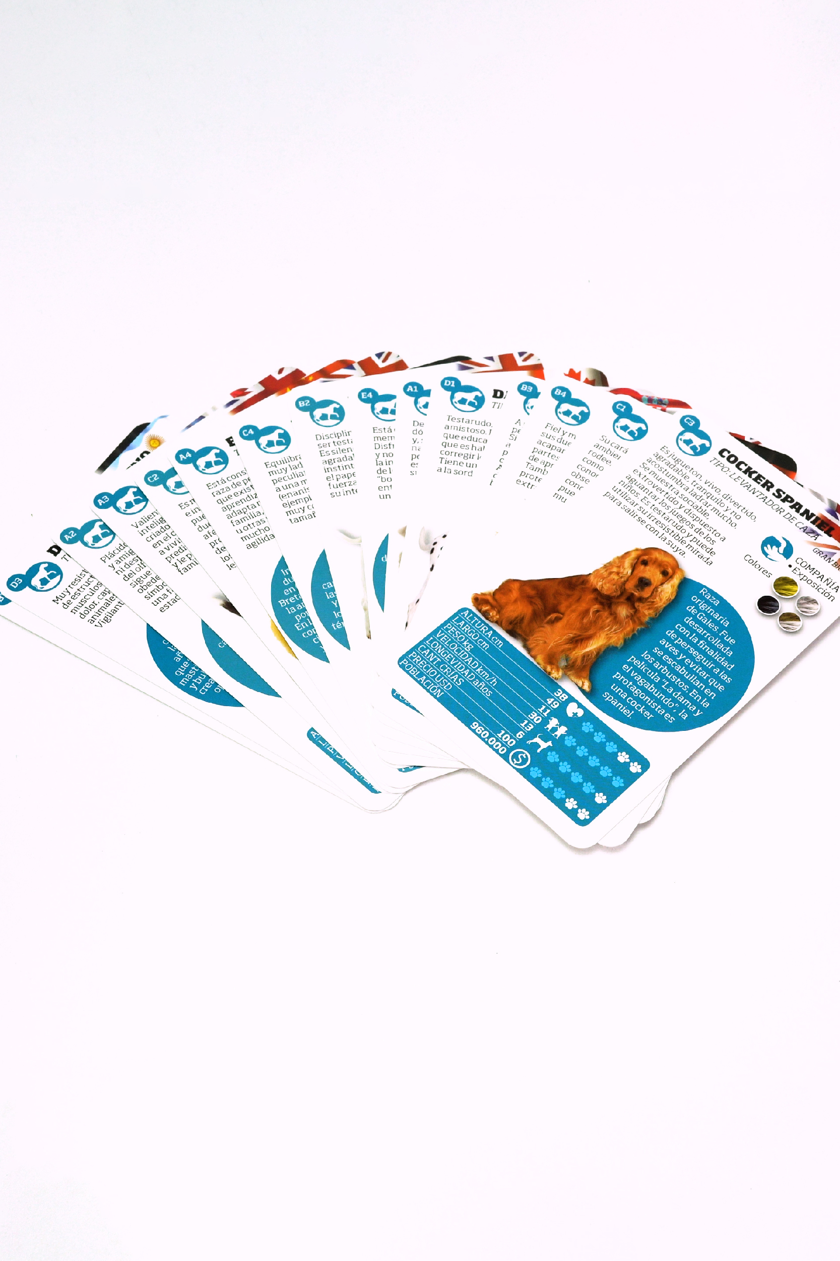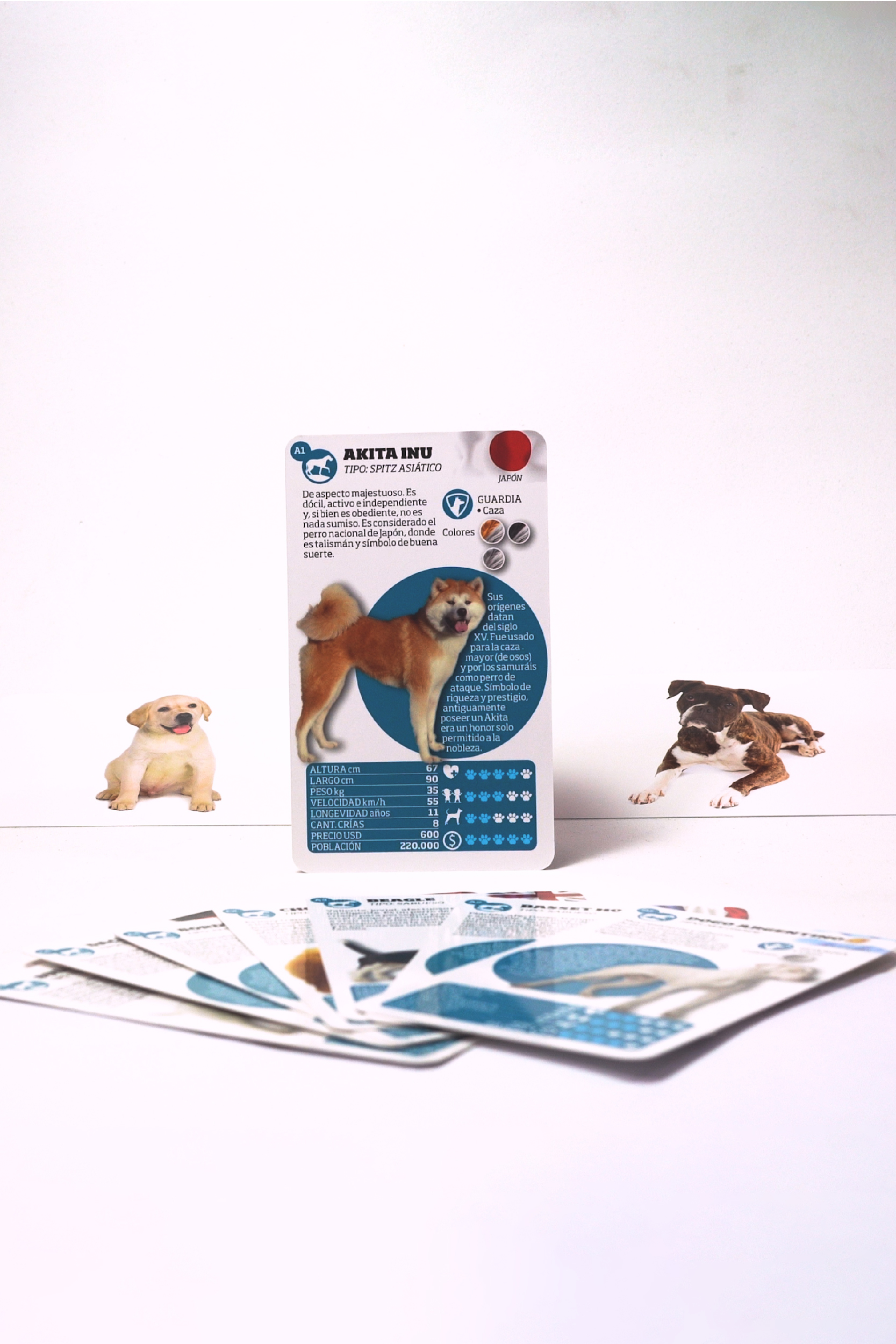 Akita inu, Basset hound, Beagle, Border collie, Boxer, Bull terrier, Bulldog, Caniche toy, Chihuahua, Chow chow, Cocker spaniel, Dachshund, Dálmata, Dóberman, Dogo argentino, Fox terrier, Galgo, Golden retriever, Gran danés, Labrador retriever, Maltés, Pastor alemán, Pequinés, Pitbull, Pointer, Rottweiler, Samoyedo, San Bernardo, Setter irlandés, Shar pei, Siberian husky y Weimaraner.