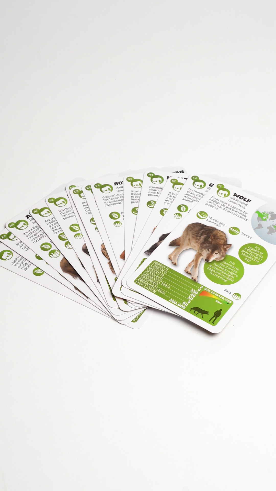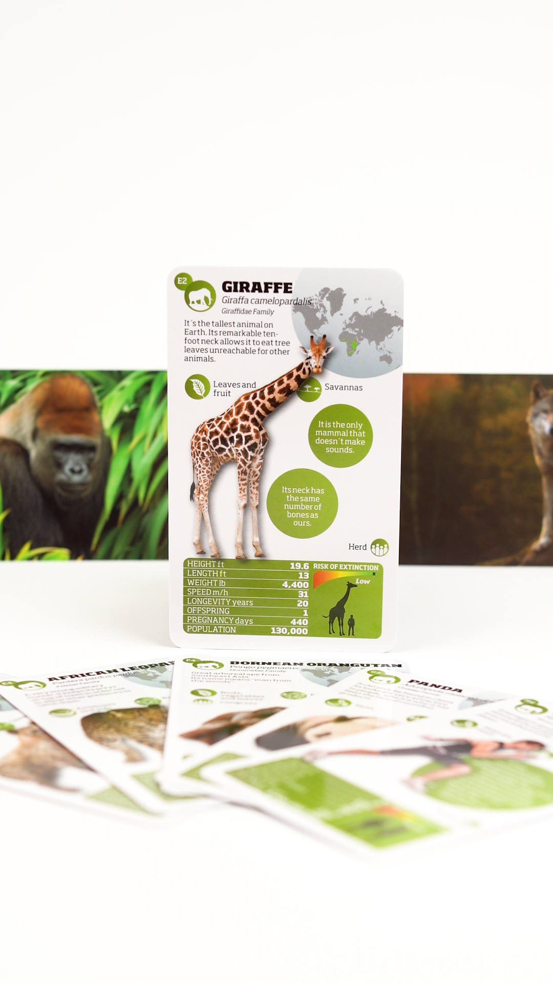 On each card, you will find: where they live, what they eat, fun facts, scales, and categorized characteristics so you can compare them and play with them.