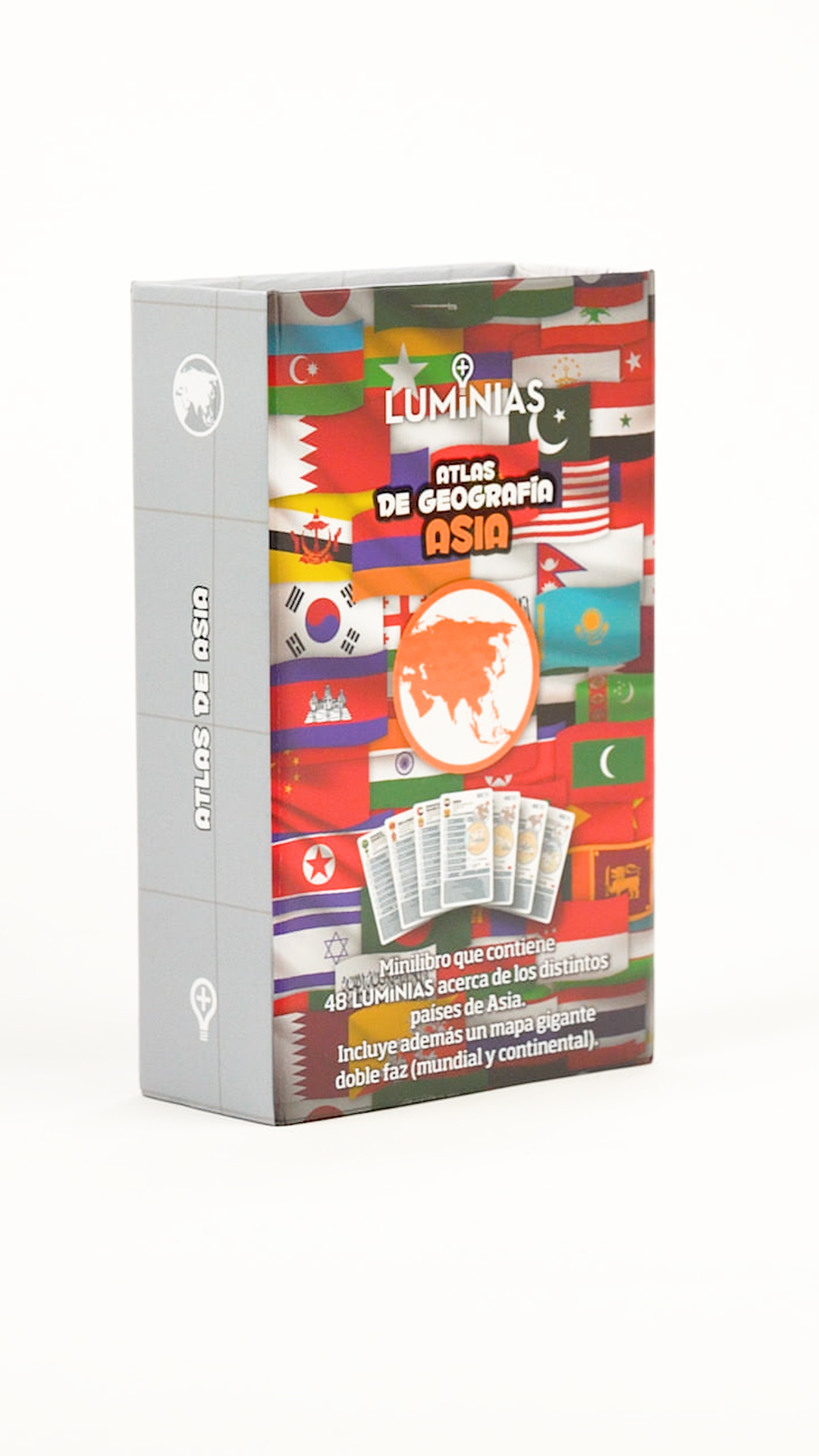Atlas mundial diseñado para aprender jugando. Contiene ¬fichas infográficas doble faz, presentadas a modo de páginas sueltas en la obra, ideales para ser utilizadas de forma interactiva. Su información categorizada facilita la comprensión mediante la lectura, la comparación y la deducción.