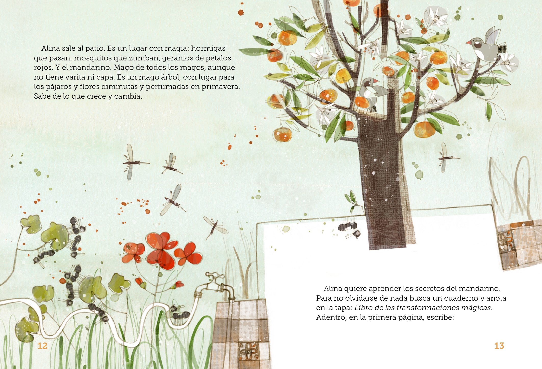 Alina está aburrida de ser Alina. De tener la misma voz, el pelo lacio, de pensar los mismos pensamientos. Quiere ser diferente. Por completo distinta de la que es. ¿Pero cómo pasar de nena a pájaro, a flor o a cualquier otra cosa? Alina deberá aprender a ser maga, y lo hará bajo la sombra del mandarino del patio: él sí es un verdadero mago.